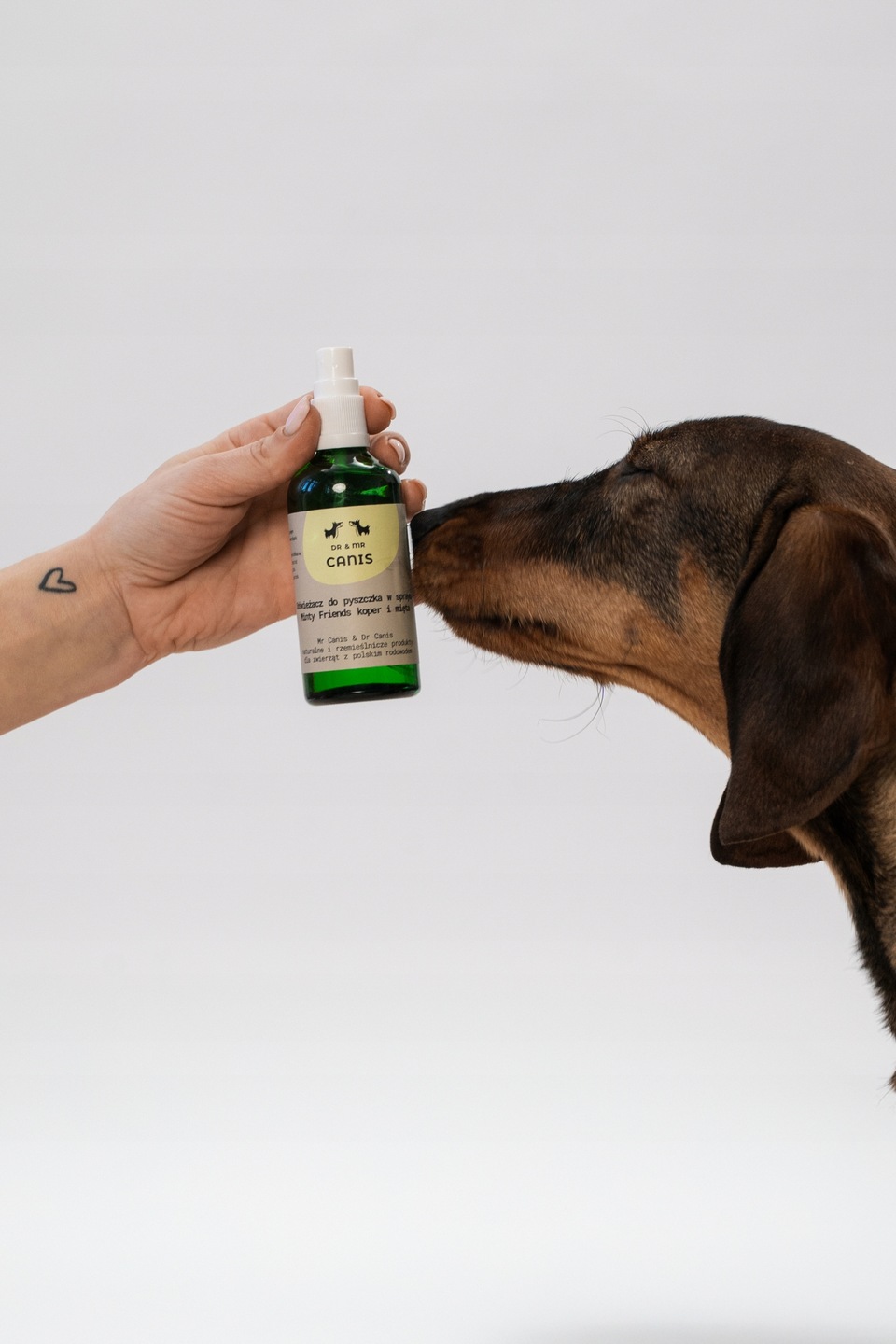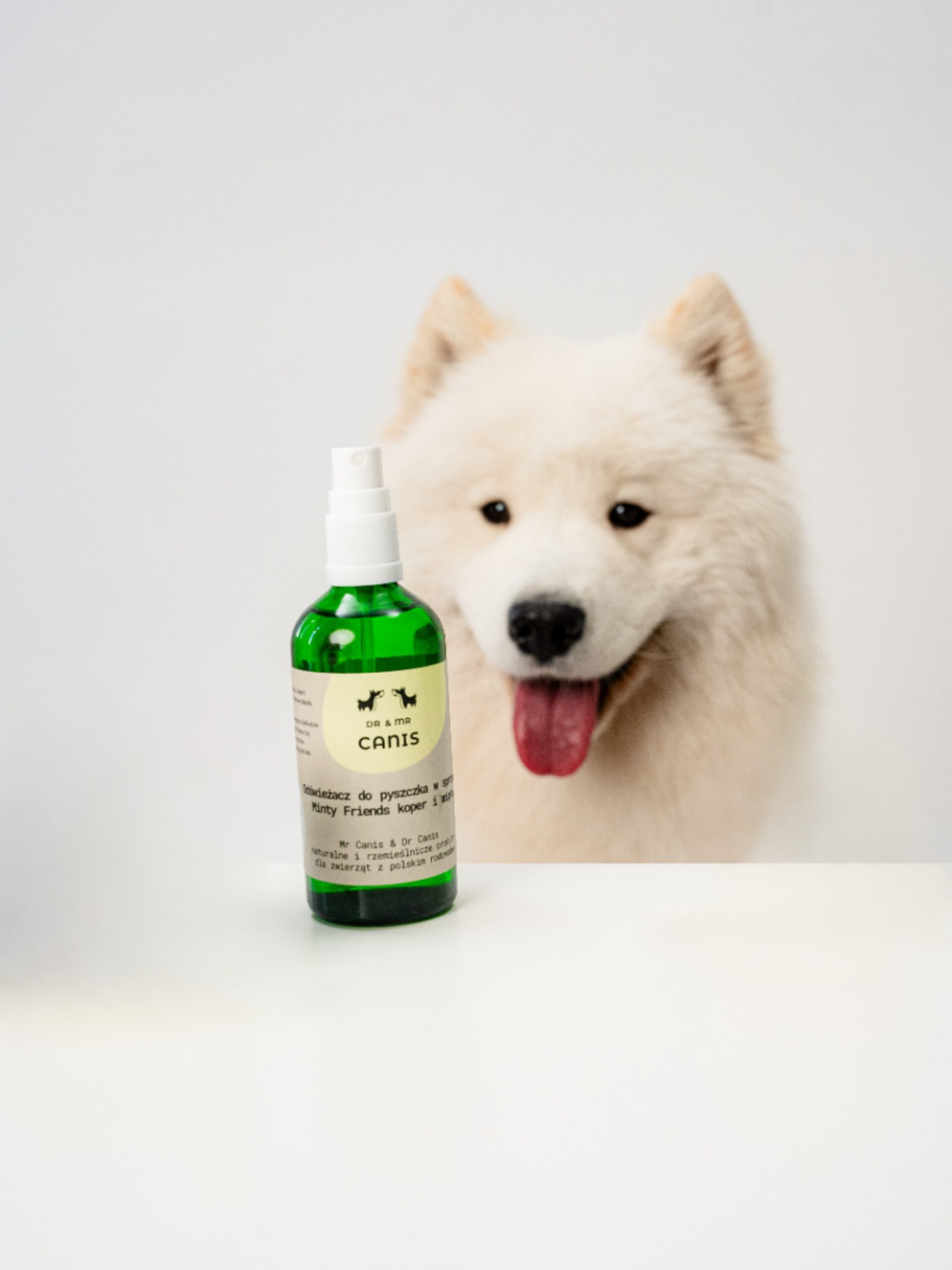 Zdrowy i świeży oddech Twojego pupila to podstawa! Nasz naturalny spray do pyszczka, dzięki właściwościom antyseptycznym i kojącym, pomaga utrzymać zdrowe dziąsła i świeży oddech. Wzbogacony olejem kokosowym i  olejkami eterycznymi z nasion kopru oraz z mięty pieprzowej. Skutecznie odświeża oddech i dba o zdrowie jamy ustnej Twojego psa. Z pewnością przypadnie do gustu Pupilowi. Produkt skomponowany jest ze składników bezpiecznych dla Twojego pupila.