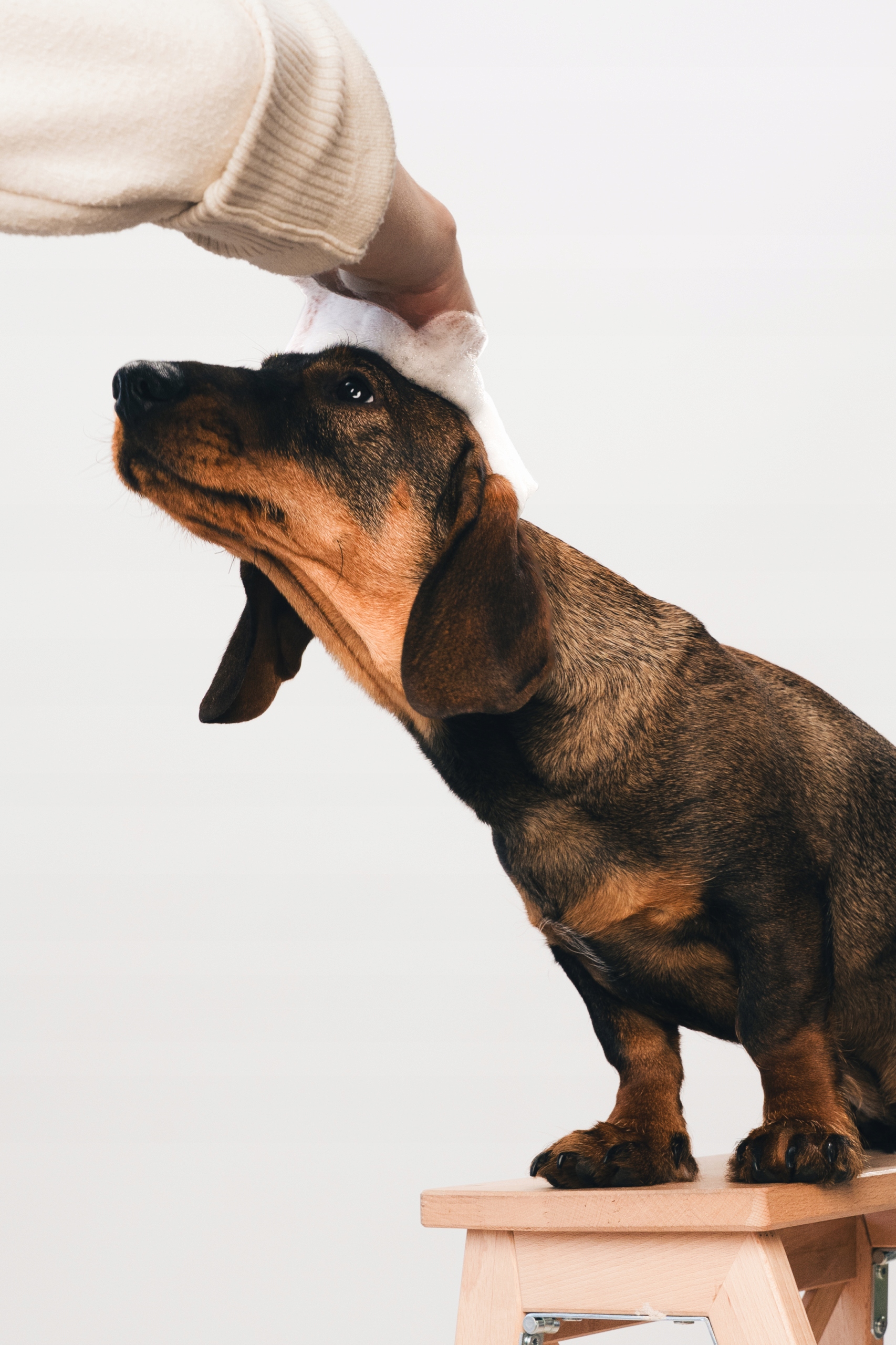 2. Nanieś niewielką ilość szamponu na dłonie i delikatnie wmasuj w sierść.